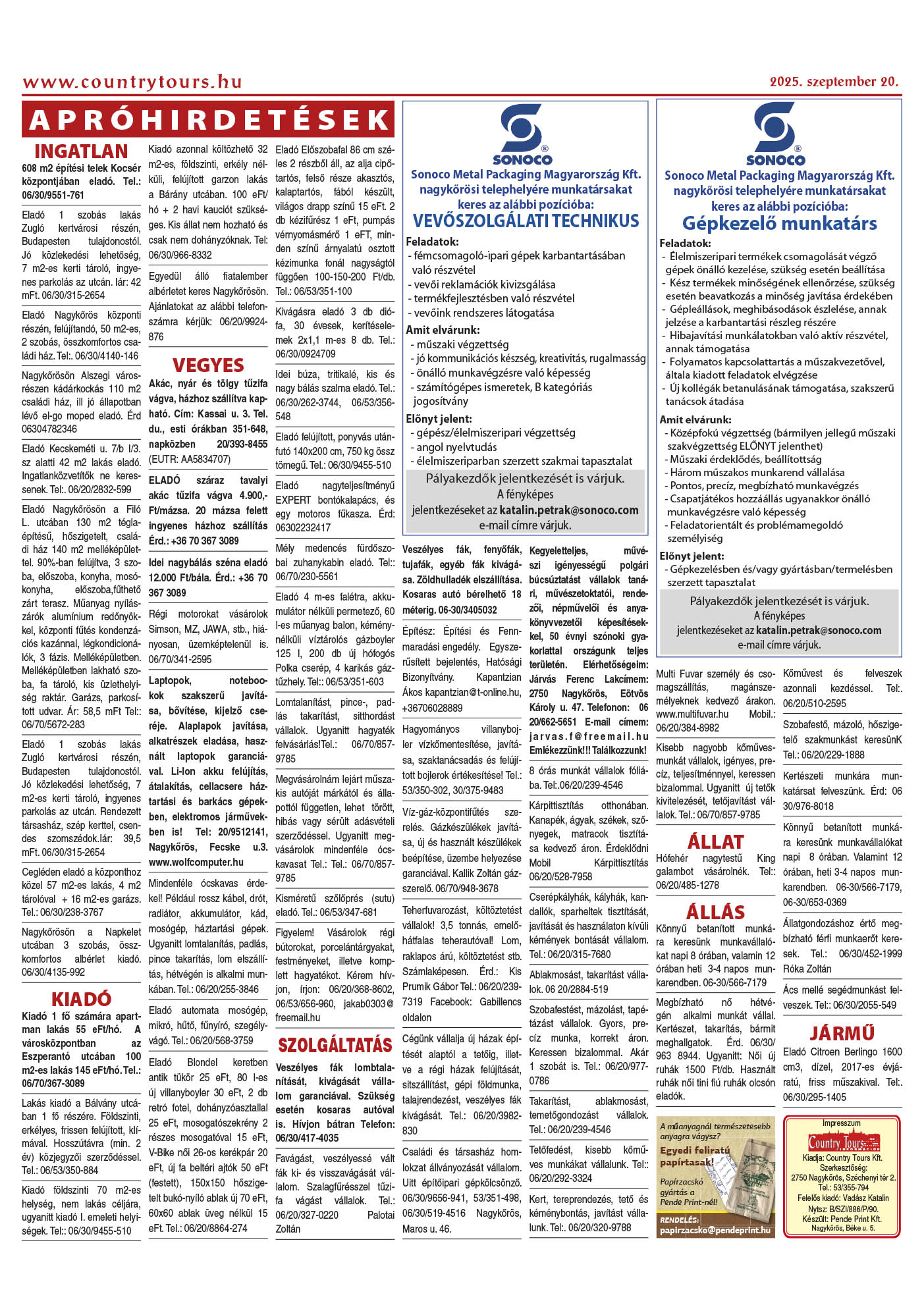 Country Tours hirdető 36. évfolyam 37-38. szám